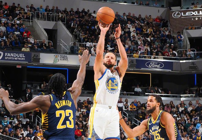 其一,库里的得分效率已经开始下滑。以本场对阵步行者的比赛为例,尽管库里全场贡献了24分,但表现呈现出虎头蛇尾的态势。下半场他仅得到6分,投篮23中8,这样的效率着实难以令人满意。