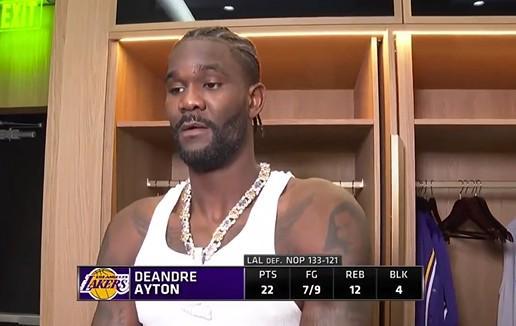 北京时间今日,在NBA常规赛中,湖人队在主场以133-121击败了鹈鹕队。赛后,湖人队主力中锋德安德烈-艾顿接受了媒体采访。