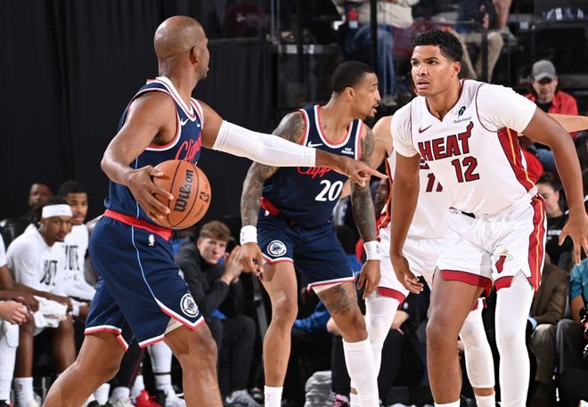 根据快船随队记者穆雷报道,快船老板鲍尔默非常不满当下的处境,和泰伦卢以及运营总裁弗兰克会面时,明确指出两人应该承担责任,并思考如何逆转局面。此外关于球队交易流言也越来越多,除了科林斯之外,洛杉矶媒体也还建议快船应该交易哈登,这是球队现阶段为数不多有价值的筹码。直接进比赛,开场阿德巴约追身飙中三分,维金斯自投自抢,科林斯上篮止血后,阿德巴约连续军训祖巴茨,化身奥尼尔,还将祖巴茨的上篮大帽扇飞!中段维金斯内外开花打停快船,哈登突破抛投,阿德巴约继续扔三分。