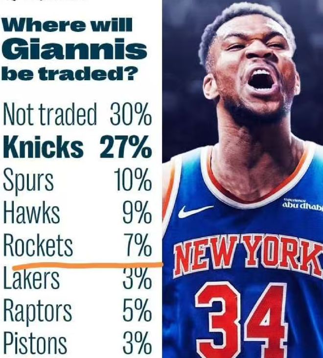 字母下家概率出炉,尼克斯马刺闯入前三,火箭坐五争三或有大惊喜