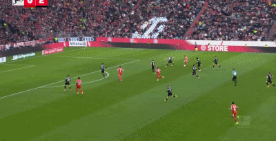 下半场易边再战第51分钟,卡尔中路扛住防守推进分球,奥利塞再分到右侧的斯坦尼西奇,后者立马横传禁区,卡尔推射远角破门,但斯坦尼西奇越位了进球无效。第55分钟,奥利塞角球旋入禁区,于帕梅卡诺后门柱近距离端射命中,3:2!拜仁回敬了一次角球配合破门,并且成功反超了比分。