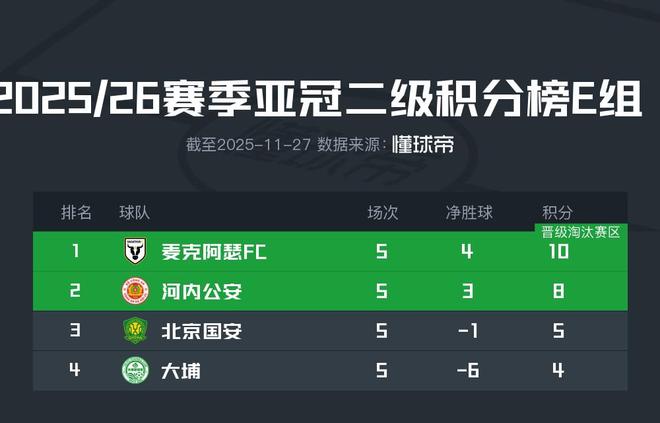 北京时间11月27日,北京国安在亚冠二小组赛第五轮的比赛中1-2被河内公安绝杀,由于胜负关系处于劣势,北京国安已经无缘小组出线。